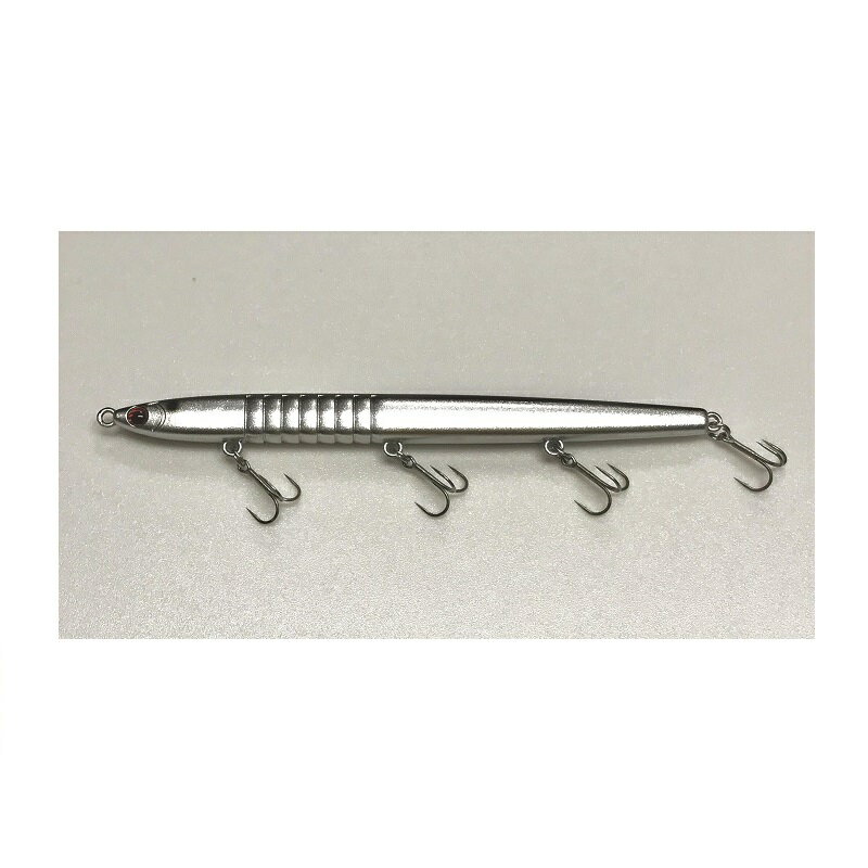 いわゆるI字形ルアーで、派手なアクションはせず、表層で引き波を出しながら静かにアピールするタイプです。